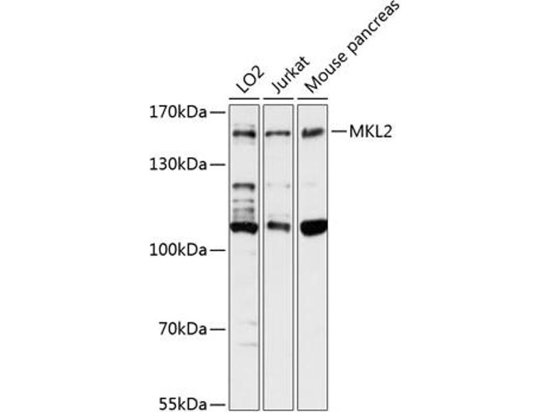 This anti-MKL2 antibody is a 兔 多克隆 antibody detecting MKL2 in WB. Suitable for 人.