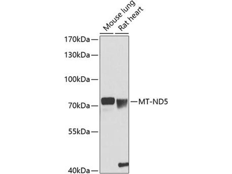 This anti-MT-ND5 antibody is a 兔 多克隆 antibody detecting MT-ND5 in WB. Suitable for 小鼠.