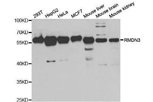 - RMDN3 (regulator of microtubule dynamics 3) is a protein-coding gene. Diseases associated with RMDN3 include cerebritis, and noma. GO annotations related to this gene include protein binding. An important paralog of this gene is RMDN1.,RMDN3,FAM82A2,FAM82C,RMD-3,RMD3,ptpip51,Epigenetics & Nuclear Signaling,Cancer,Cell Biology & Developmental Biology,Apoptosis,Cell Cycle,Cell differentiation,RMDN3
