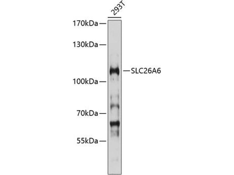This gene belongs to the solute carrier 26 family, whose members encode anion transporter proteins. This particular family member encodes a protein involved in transporting chloride, oxalate, sulfate and bicarbonate. Alternatively spliced transcript variants encoding distinct isoforms have been described.,SLC26A6,Signal Transduction,Endocrine & Metabolism,SLC26A6
