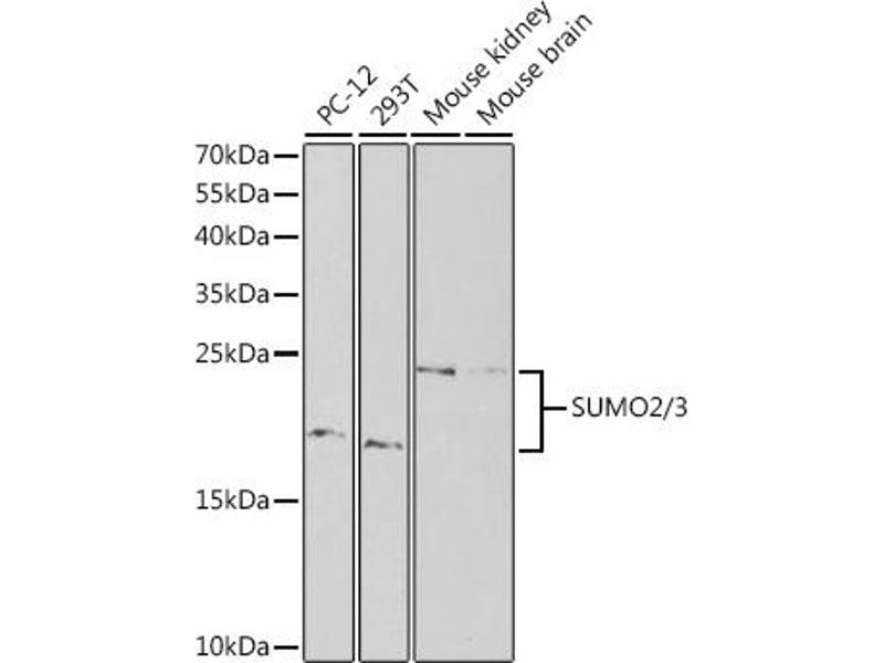 This gene encodes a protein that is a member of the SUMO (small ubiquitin-like modifier) protein family. It functions in a manner similar to ubiquitin in that it is bound to target proteins as part of a post-translational modification system. However, unlike ubiquitin which targets proteins for degradation, this protein is involved in a variety of cellular processes, such as nuclear transport, transcriptional regulation, apoptosis, and protein stability. It is not active until the last two amino acids of the carboxy-terminus have been cleaved off. Numerous pseudogenes have been reported for this gene. Alternate transcriptional splice variants, encoding different isoforms, have been characterized.,SUMO2,HSMT3,SMT3B,SMT3H2,SUMO3,Smt3A,Cell Biology & Developmental Biology,Ubiquitin,Endocrine & Metabolism,Mitochondrial metabolism,Immunology & Inflammation,IL-6 Receptor Signaling Pathway,NF-kB Signaling Pathway,SUMO2