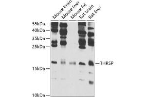 The protein encoded by this gene is similar to the gene product of S14, a rat gene whose expression is limited to liver and adipose tissue and is controlled by nutritional and hormonal factors. This gene has been shown to be expressed in liver and adipocytes, particularly in lipomatous modules. It is also found to be expressed in lipogenic breast cancers, which suggests a role in controlling tumor lipid metabolism.,THRSP,LPGP1,Lpgp,S14,SPOT14,THRP,Cancer,Tumor biomarkers,Signal Transduction,Endocrine & Metabolism,Lipid Metabolism,THRSP