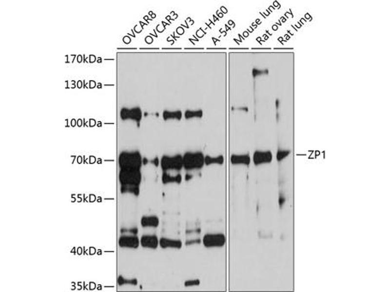 This anti-ZP1 antibody is a 兔 多克隆 antibody detecting ZP1 in WB. Suitable for 人.