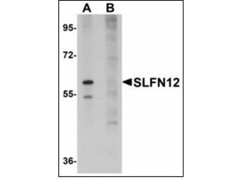 This antibody reacts to the C-term of Schlafen Family Member 12 (SLFN12).