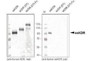 - Highly pure (>95%) recombinant human esKDR (Ala20-Pro678) derived from insect cells