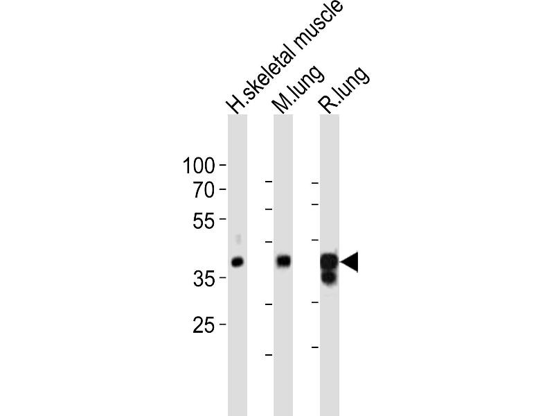 This LMCD1 antibody is generated from a rabbit immunized with a KLH conjugated synthetic peptide between 316-350 amino acids from the C-terminal region of human LMCD1.