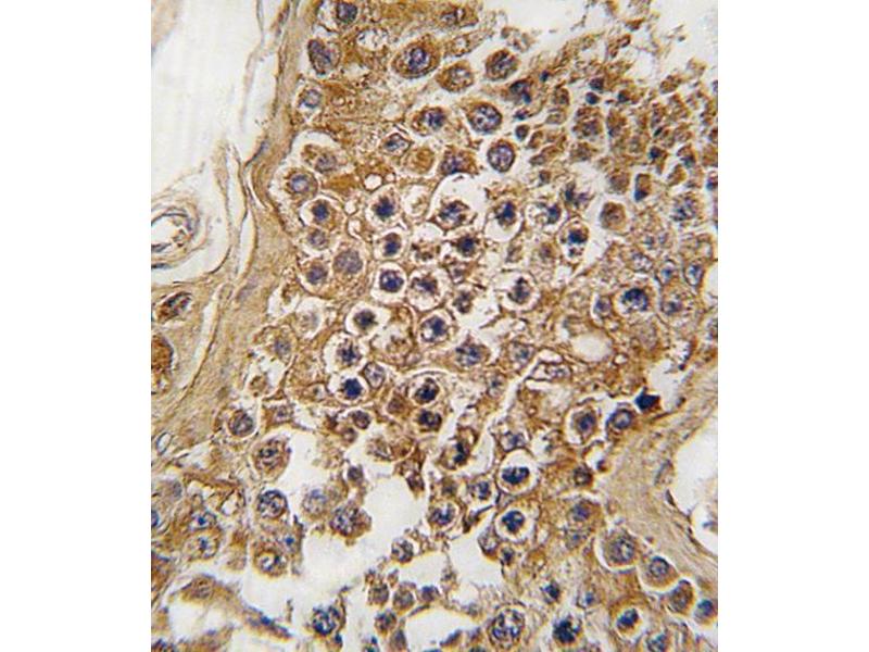 This ALK antibody is generated from rabbits immunized with a KLH conjugated synthetic peptide between 636-666 amino acids from the Central region of human ALK.