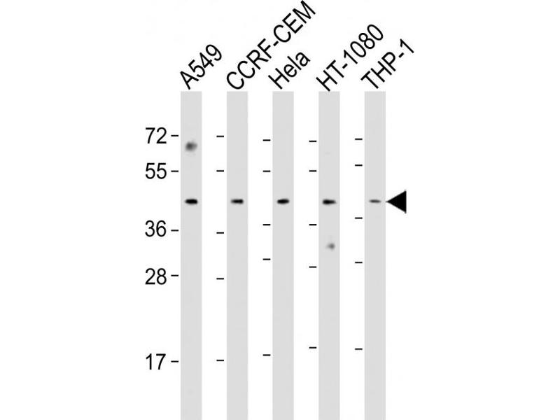 This MAZ antibody is generated from a rabbit immunized with a KLH conjugated synthetic peptide between 295-327 amino acids from the Central region of human MAZ.