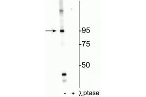 - Specific for endogenous levels of the ~95 kDa Insulin receptor phosphorylated at Thr1160. Immunolabeling is completely eliminated with λ-phosphatase treatment.