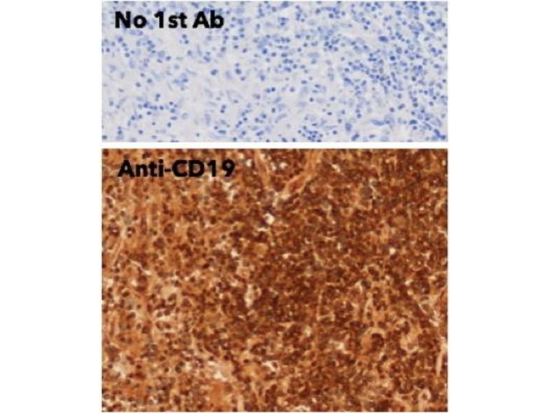 Goat polyclonal antibody to CD19. CD19 is a type I transmembrane glycoprotein with 2 C-type Ig domains and multiple phosphorylation sites on long cytoplasmic domain. It is a cell surface molecule which assembles with the antigen receptor of B lymphocytes in order to decrease the threshold for antigen receptor-dependent stimulation. It is a major B lineage marker.