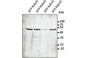 - Detects Rab10 by Western blot in transfected cells with GFP-Rab10.
