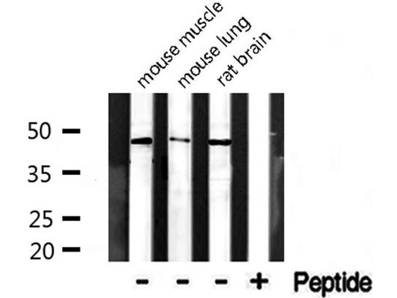 WB 1:500-1:1000, IHC: 1:50-1:200, IF/ICC 1:100-1:500, ELISA(peptide) 1:20000-1:40000