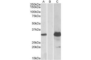 Western Blot: In transfected HEK293 transiently expressing full-length Human KCTD11 (myc and DYKDDDDK tagged), a band of approx. 30 kDa was observed. No bands were observed in mock-transfected HEK293 and the same band was observed using anti-DYKDDDDK tag