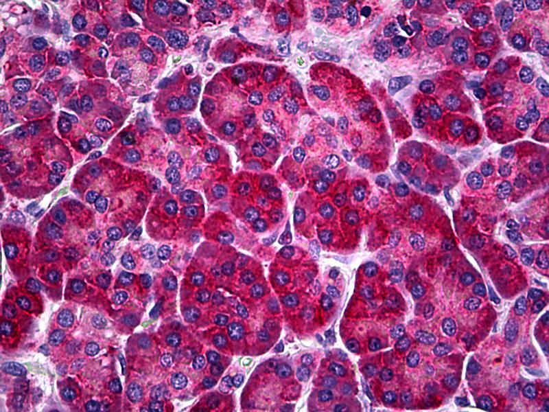 Usage: Immunohistochemistry: Formalin-fixed paraffin-embedded sections. Sandwich ELISA: Recombinant protein. Western Blot: Cell lysate, Transfected lysate, Recombinant protein. -