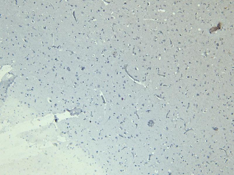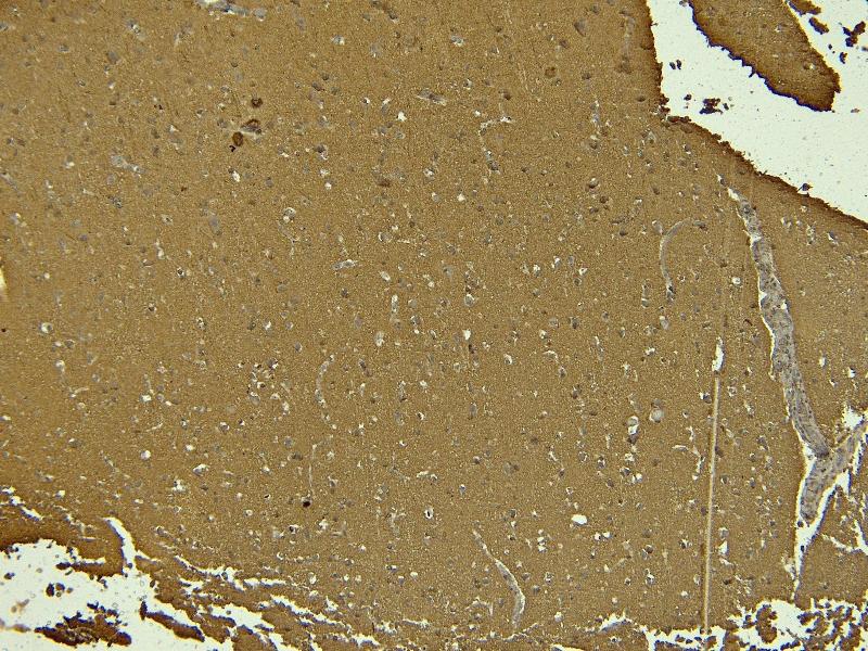 Immunohistochemistry: Paraffin embedded Human Brain (Cortex). Recommended concentration: 7 μg/mL.