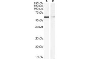 Western Blot: Approx 58-60 kDa band observed in cell lysates of HEK293 and HeLa calculated MW of 54.2 kDa according to NP_001159418.1). Recommended concentration: 1-2 μg/mL.