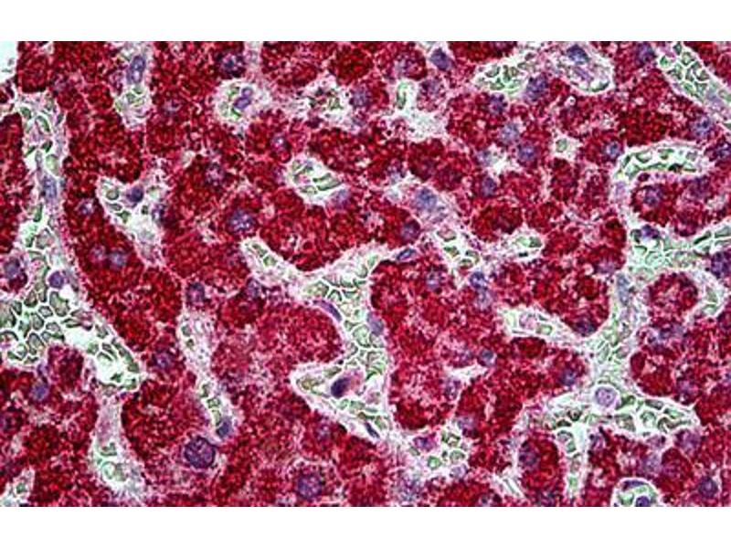 Immunofluorescence: Strong expression of the protein seen in the cytoplasm/ plasma membranes and nuclei of MCF7 cells. Recommended concentration: 10μg/ml.