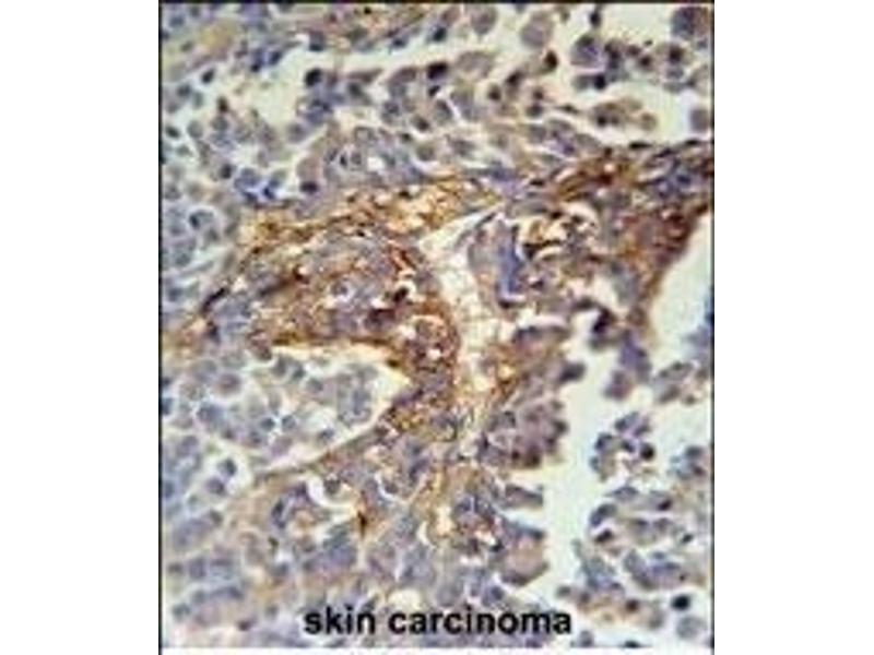 This ARMC5 antibody is generated from rabbits immunized with a KLH conjugated synthetic peptide between 599-628 amino acids from the C-terminal region of human ARMC5.