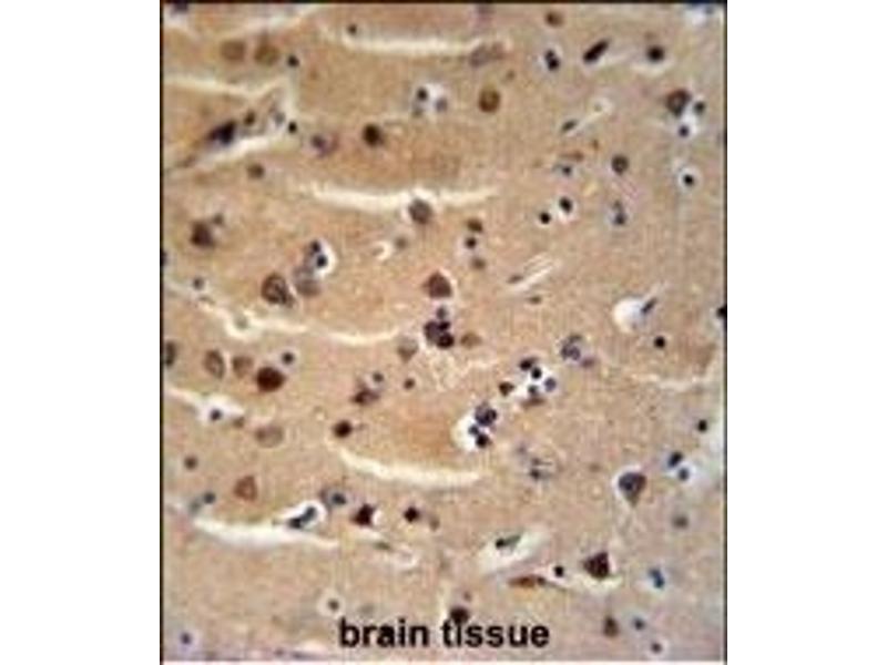 This AXIN2 antibody is generated from rabbits immunized with a KLH conjugated synthetic peptide between 816-843 amino acids from the C-terminal region of human AXIN2.