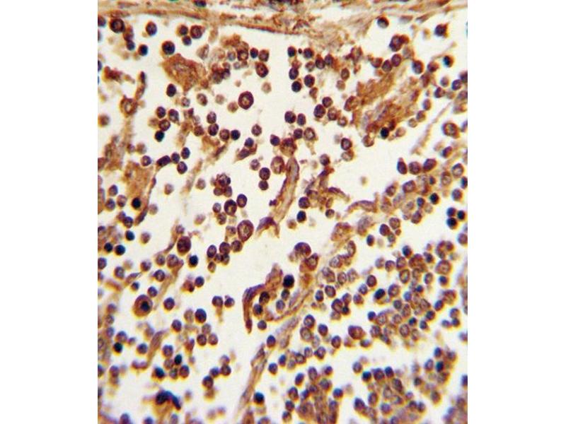 This SELL antibody is generated from rabbits immunized with a KLH conjugated synthetic peptide between 346-372 amino acids from the C-terminal region of human SELL.