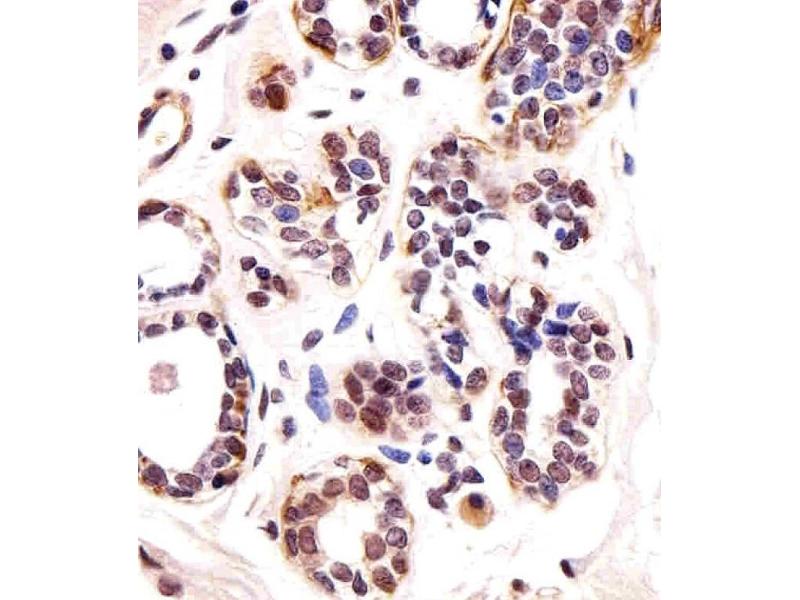 This TBX1 antibody is generated from rabbits immunized with a KLH conjugated synthetic peptide between 327-356 amino acids from the C-terminal region of human TBX1.