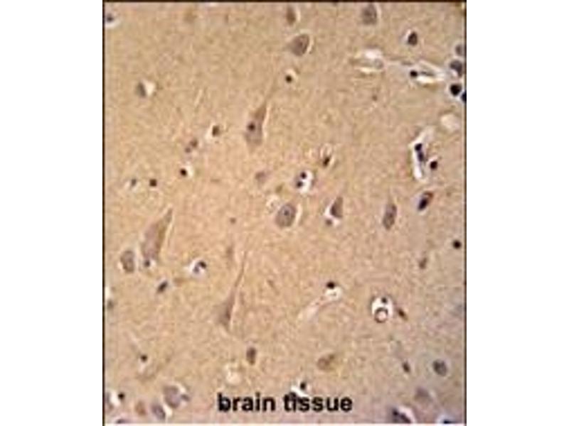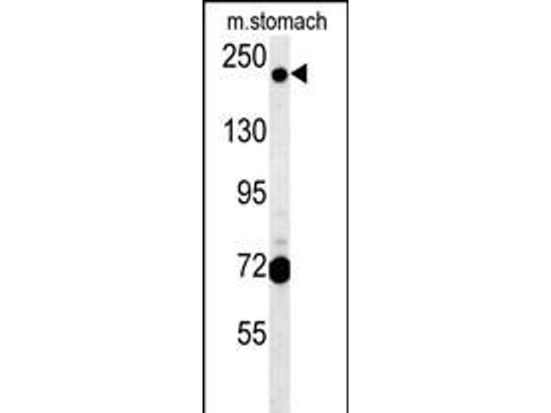 This GCC2 antibody is generated from rabbits immunized with a KLH conjugated synthetic peptide between 1581-1609 amino acids from the C-terminal region of human GCC2.
