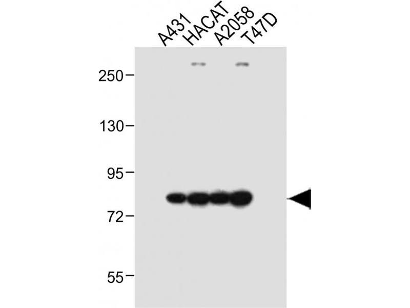 This ALOXE3 antibody is generated from rabbits immunized with a KLH conjugated synthetic peptide between 223-252 amino acids from the Central region of human ALOXE3.
