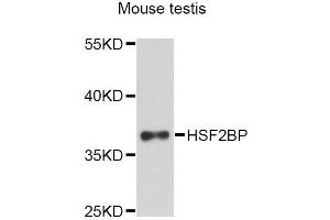 Background: HSF2 binding protein (HSF2BP) associates with HSF2. The interaction occurs between the trimerization domain of HSF2 and the amino terminal hydrophilic region of HSF2BP that comprises two leucine zipper motifs. HSF2BP may therefore be involved in modulating HSF2 activation.