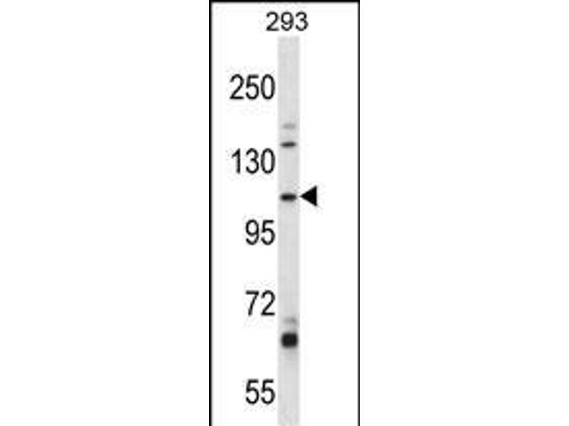 This B4GALNT3 antibody is generated from rabbits immunized with a KLH conjugated synthetic peptide between 555-584 amino acids from the Central region of human B4GALNT3.