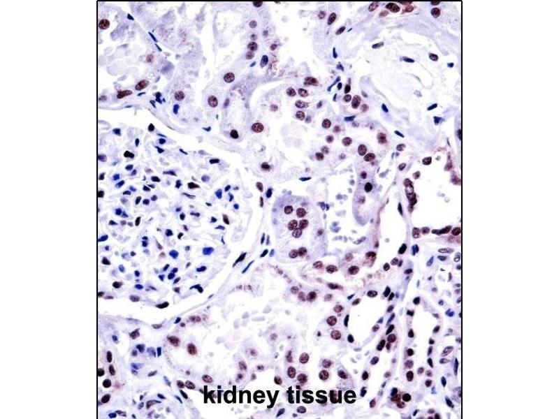 This NONO antibody is generated from rabbits immunized with a KLH conjugated synthetic peptide between 45-74 amino acids from the N-terminal region of human NONO.