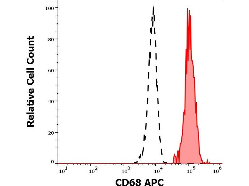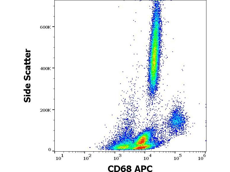 The mouse monoclonal antibody Y1/82A recognizes CD68 (LAMP4), a 110 kDa glycoprotein expressed mainly in cytoplasmic granules of monocytes/macrophages, granulocytes, and dendritic cells.