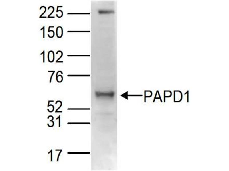 - Anti-PAPD1 Antibody was produced in rabbits by repeated immunizations with a synthetic peptide of human PAPD1 containing an amino acid sequence from the C-terminus of the protein.