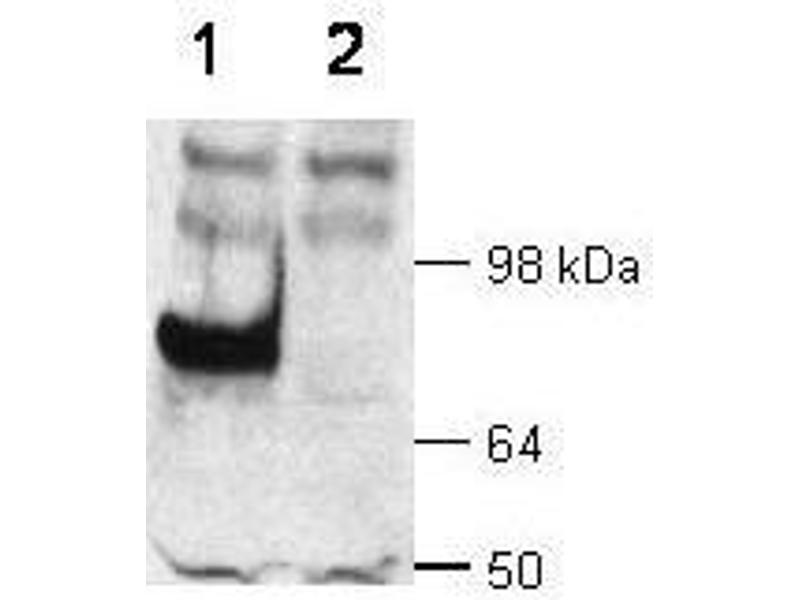 Background: Anti-Dab1 Antibody recognizes Dab1 that is a phosphoprotein encoded by the mouse gene dab and is related to the Drosophila gene 'disabled'. Mutations in the mouse dab gene may result in the 'scrambler' and 'yotari' phenotypes. Dab1 binds to non-receptor tyrosine kinases and plays an important role in brain development. Dab1 is expressed in neuronal populations exposed to reelin, and it functions as a signaling molecule that regulates cell positioning in the developing brain. Cloning of human Dab1 and sequence determinations suggest a 96 % identity to the mouse sequence. Dab1 binds to cytoplasmic regions of very low density lipoprotein receptors (VLDLR), apolipoprotein E receptor-2 (ApoER2) and the Amyloid Precursor Protein (APP) family of proteins. Dab1 accumulates in ectopic neurons from mice lacking Reelin or both VLDLR and ApoER2. In humans, Dab1 has been mapped to lp32-p312. This region shows homology of synteny with the segment of mouse chromosome 4 containing Dab1.