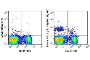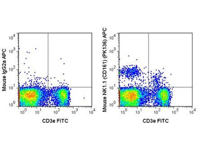 Anti-NK1.1 is tested in Flow Cytometry useful for Immunohistochemistry, Immunoprecipitation, Immunofluorescence using mouse spleen cells, or an appropriate cell type (where indicated). Researchers should determine optimal titers for applications that are not stated.
