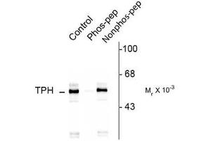 Anti-Tryptophan Hydroxylase pS260 (Rabbit) antibody is tested for use in Western Blotting. Specific conditions for reactivity should be optimized by the end user. Expect a band of 55 kDa in size corresponding to tryptophan hydroxylase protein phosphorylated at Ser260 in the appropriate cell lysate or extract. Researchers should determine optimal titers for applications that are not stated below.