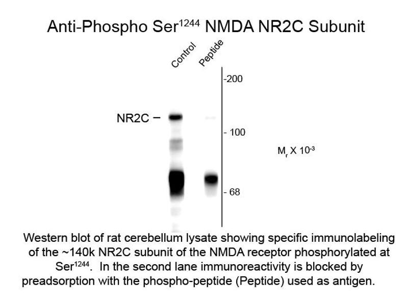 - Anti-NMDA R2C pS1244 Antibody was produced by repeated immunizations with synthetic phospho-peptide corresponding to amino acid residues surrounding Ser1244.