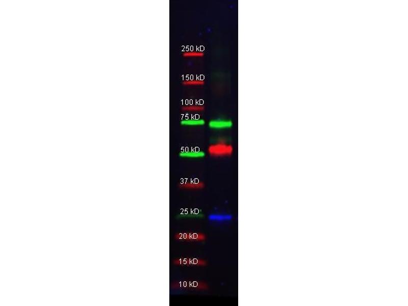 Anti-GST DyLight™800 has been tested by ELISA and dot blot. This product is designed for immunofluorescence microscopy, fluorescence based plate assays (FLISA) and fluorescent western blotting. This product is also suitable for multiplex analysis, including multicolor imaging, utilizing various commercial platforms. The emission spectra for this DyLight™ conjugate match the principle output wavelengths of most common fluorescence instrumentation. -