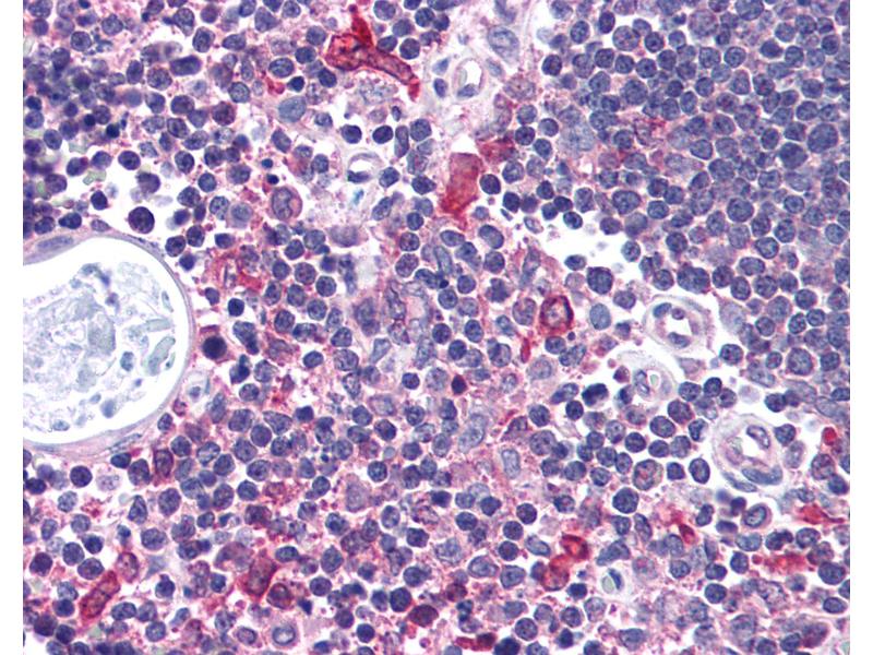 Usage: Immunohistochemistry: This antibody was validated for use in immunohistochemistry on a panel of 21 formalin-fixed, paraffin-embedded (FFPE) human tissues after heat induced antigen retrieval in  pH 6.0 citrate buffer. After incubation with the primary antibody, slides were incubated with biotinylated secondary antibody, followed by alkaline phosphatase-streptavidin and chromogen. The stained slides were evaluated by a pathologist to confirm staining specificity. The optimal working concentration for this antibody was determined to be 5 μg/mL.