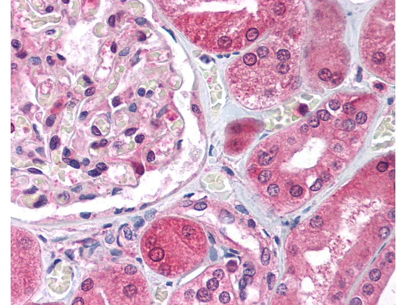 Usage: Immunohistochemistry: This antibody was validated for use in immunohistochemistry on a panel of 21 formalin-fixed, paraffin-embedded (FFPE) human tissues after heat induced antigen retrieval in pH 6.0 citrate buffer. After incubation with the primary antibody, slides were incubated with biotinylated secondary antibody, followed by alkaline phosphatase-streptavidin and chromogen. The stained slides were evaluated by a pathologist to confirm staining specificity. The optimal working concentration for this antibody was determined to be 5 μg/mL. -