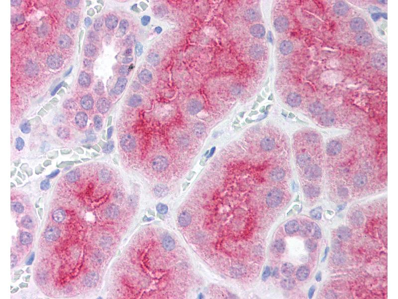 Usage: Immunohistochemistry: This antibody was validated for use in immunohistochemistry on a panel of 21 formalin-fixed, paraffin-embedded (FFPE) human tissues after heat induced antigen retrieval in pH 6.0 citrate buffer. After incubation with the primary antibody, slides were incubated with biotinylated secondary antibody, followed by alkaline phosphatase-streptavidin and chromogen. The stained slides were evaluated by a pathologist to confirm staining specificity. The optimal working concentration for this antibody was determined to be 5 μg/mL. -