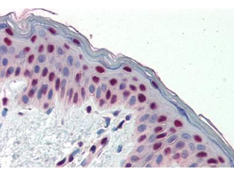 Usage: Immunohistochemistry: This antibody was validated for use in immunohistochemistry on a panel of 21 formalin-fixed, paraffin-embedded (FFPE) human tissues after heat induced antigen retrieval in pH 6.0 citrate buffer. After incubation with the primary antibody, slides were incubated with biotinylated secondary antibody, followed by alkaline phosphatase-streptavidin and chromogen. The stained slides were evaluated by a pathologist to confirm staining specificity. The optimal working concentration for this antibody was determined to be 5 μg/mL. -