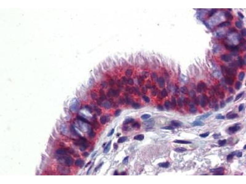 Usage: ELISA titer using peptide based assay: 1:12500. Western Blot: Suggested dilution at 1 μg/mL in 5 % skim milk / PBS buffer, and HRP conjugated anti-Rabbit IgG should be diluted in 1:50000 - 100000 as second antibody. Immunohistochemistry: This antibody was validated for use in immunohistochemistry on a panel of 21 formalin-fixed, paraffin-embedded (FFPE) human tissues after heat induced antigen retrieval in pH 6.0 citrate buffer. After incubation with the primary antibody, slides were incubated with biotinylated secondary antibody, followed by alkaline phosphatase-streptavidin and chromogen. The stained slides were evaluated by a pathologist to confirm staining specificity. The optimal working concentration for this antibody was determined to be 5 μg/mL. -