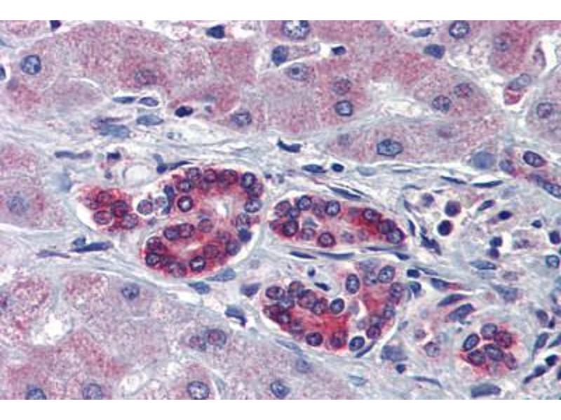 Usage: Immunohistochemistry: This antibody was validated for use in immunohistochemistry on a panel of 21 formalin-fixed, paraffin-embedded (FFPE) human tissues after heat induced antigen retrieval in pH 6.0 citrate buffer. After incubation with the primary antibody, slides were incubated with biotinylated secondary antibody, followed by alkaline phosphatase-streptavidin and chromogen. The stained slides were evaluated by a pathologist to confirm staining specificity. The optimal working concentration for this antibody was determined to be 5 μg/mL. -