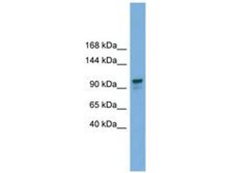 Synthetic peptide from C-Terminus of human GANAB (Q14697, NP_938148). Percent identity by BLAST analysis: Human, Chimpanzee, Gorilla, Orangutan, Gibbon, Monkey, Galago, Marmoset, Mouse, Rat, Hamster, Elephant, Panda, Bovine, Pig (100%), Dog, Rabbit, Horse (92%), Guinea pig (90%).