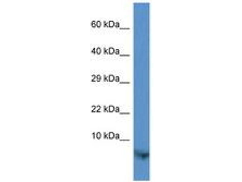 Synthetic peptide from N-Terminus of mouse Timm13 (P62075, NP_038923). Percent identity by BLAST analysis: Human, Gorilla, Gibbon, Monkey, Galago, Mouse, Rat, Elephant, Bovine, Bat, Horse, Opossum, Guinea pig, Xenopus, Salmon, Smelt, Sablefish, Stickleback, Pufferfish, Zebrafish (100%), Drosophila (92%).