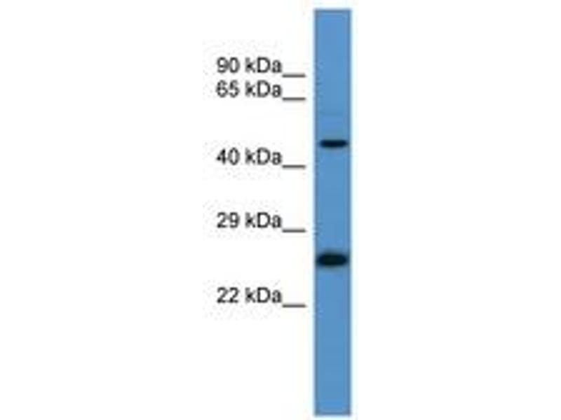 Synthetic peptide located between aa104-153 of human RAB8B (Q92930, NP_057614). Percent identity by BLAST analysis: Human, Chimpanzee, Gorilla, Orangutan, Gibbon, Monkey, Galago, Marmoset, Mouse, Rat, Hamster, Elephant, Panda, Dog, Bovine, Bat, Rabbit, Horse, Pig, Opossum, Guinea pig, Platypus, Zebrafish (100%), Sheep (92%), Turkey, Zebra finch, Chicken, Xenopus, Salmon, Drosophila, Beetle (85%).
