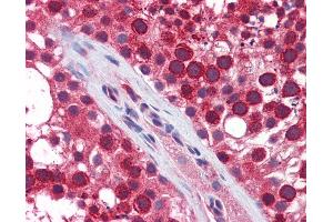 Synthetic peptide located between aa539-588 of human TBK1 (Q9UHD2, NP_037386). Percent identity by BLAST analysis: Human, Chimpanzee, Gorilla, Gibbon, Monkey, Galago, Marmoset, Mouse, Rat, Elephant, Panda, Dog, Bovine, Rabbit, Horse, Pig, Guinea pig, Platypus (100%), Zebra finch, Chicken, Lizard, Stickleback, Zebrafish (92%), Bat, Turkey, Xenopus (85%).