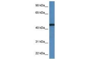 Synthetic peptide from C-Terminus of human RRS1 (Q15050, NP_055984). Percent identity by BLAST analysis: Human, Chimpanzee, Gorilla, Marmoset, Pig (100%), Panda, Dog, Bovine (85%).