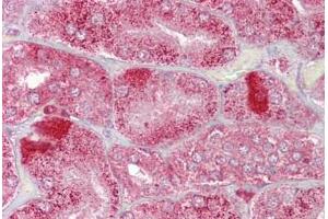 Synthetic peptide located between aa286-335 of human AMACR (Q9UHK6, NP_055139). Percent identity by BLAST analysis: Human, Gorilla, Gibbon, Marmoset, Panda, Bovine (100%), Orangutan, Baboon, Monkey, Galago (92%), Rat, Elephant, Pig (84%), Rabbit (81%), Mouse (76%).