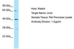 Synthetic peptide located between aa51-100 of rat Urod (B0BN55, NP_062082). Percent identity by BLAST analysis: Human, Chimpanzee, Mouse, Rat, Sheep, Bovine, Rabbit, Guinea pig (100%).